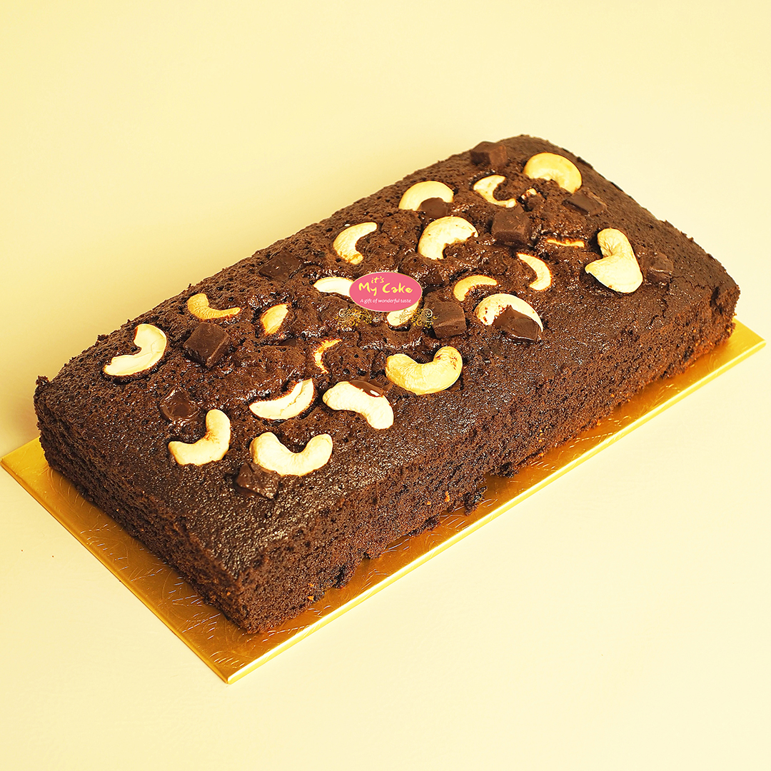 Baked brownies with a thick chocolate flavor and cashew nut topping