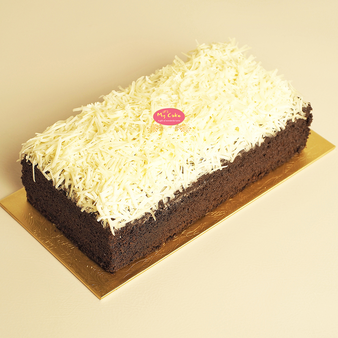 Steamed brownies topped with butter cream and grated cheddar cheese